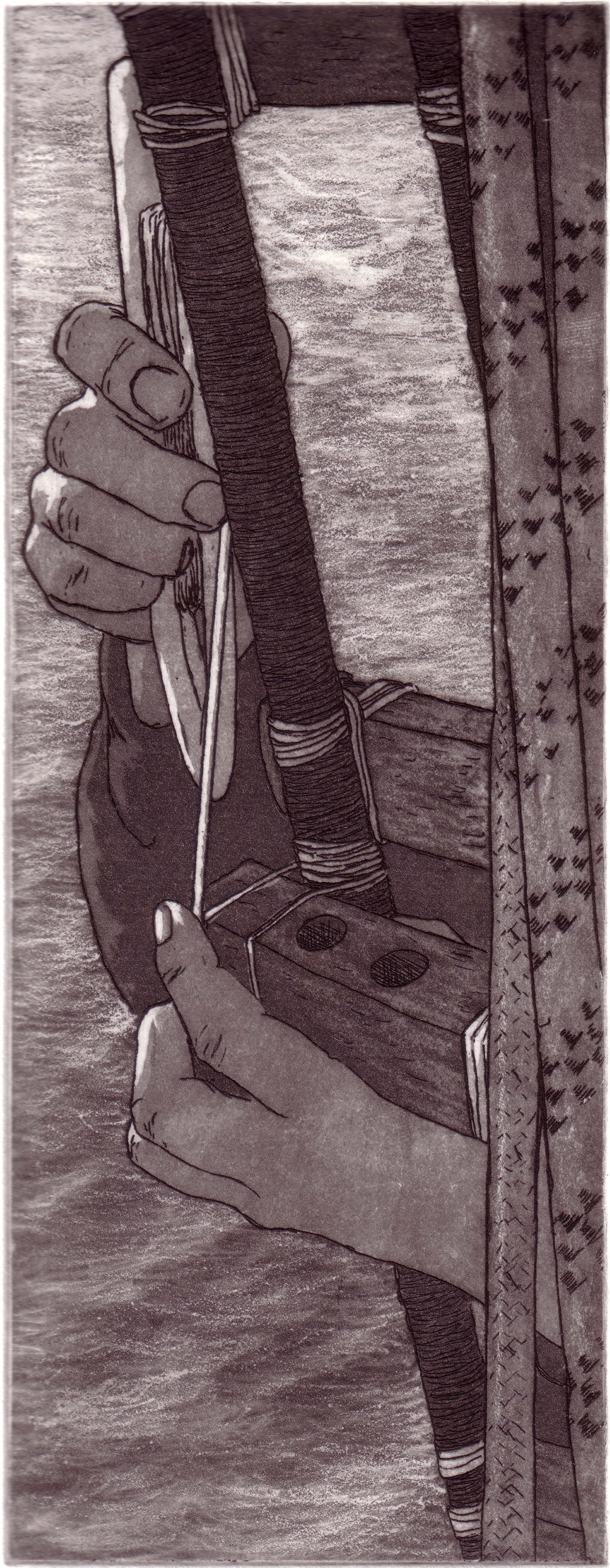Mending the Rigging, copperplate etching